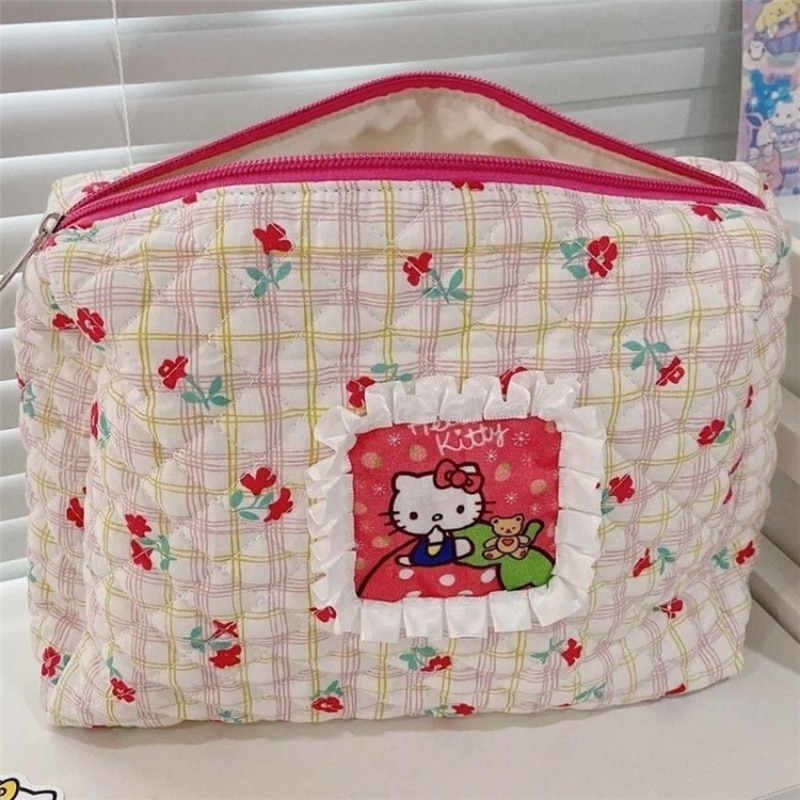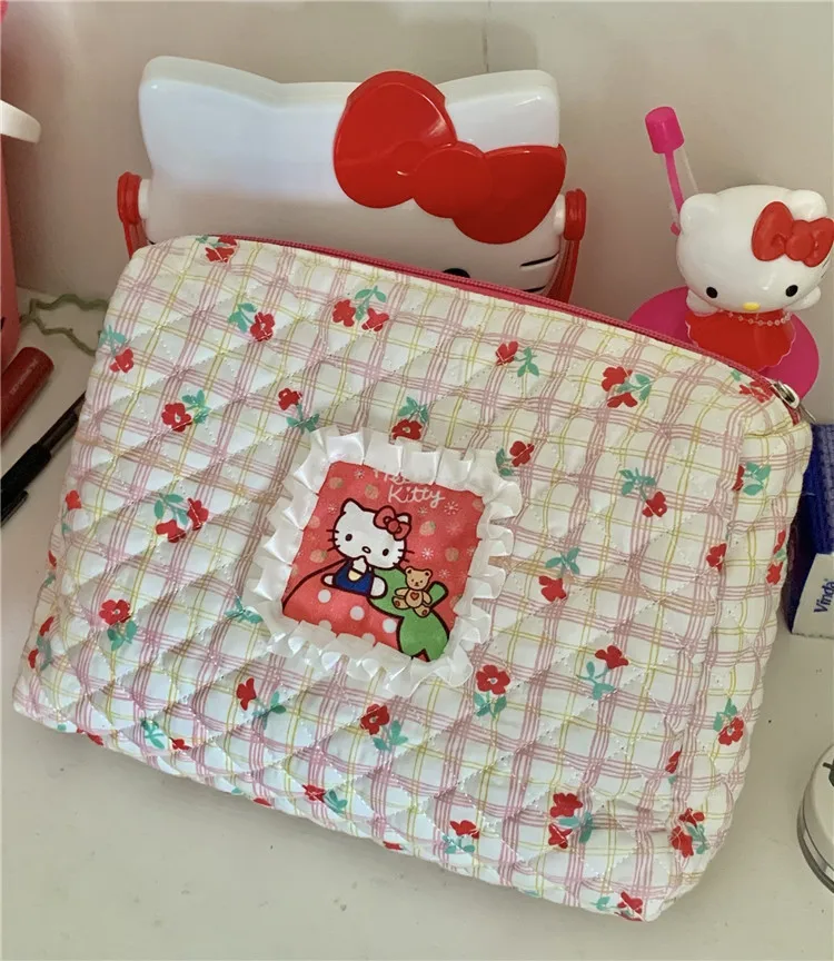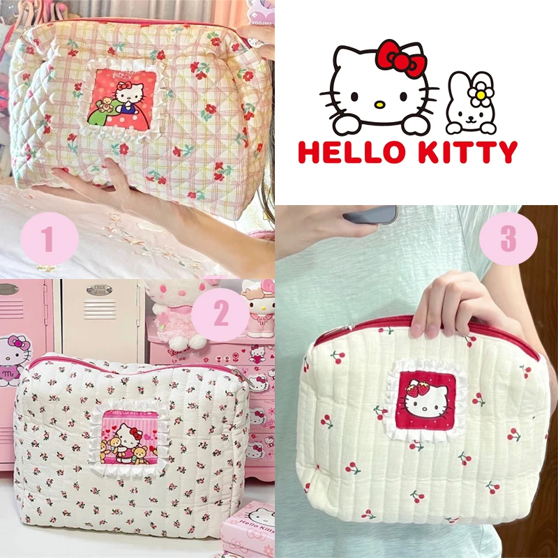 Kawaii Hello Kitty Cosmetic Bag Portable Travel Bag Anime Girl Large Capacity Skin Care Products Storage Portable Toiletry Bag